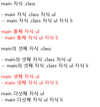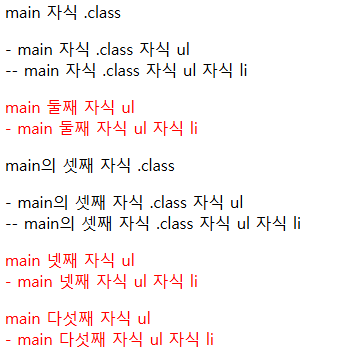 자손 선택자는 지 자식들, 지 손녀 손자들, 그 이후 후계들 (큼)까지 다 선택한다. (첫째와 첫째 자식의 이름이 calss인 것도 포함, 둘째와 둘째 자식들도 똑같이)