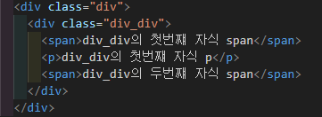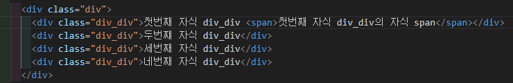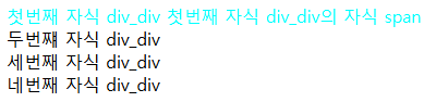 이렇게 선택한다면 .div의 자식 .div_div중 첫 번째 자식이니까 span만 선택되겠지?! (근데 이것도 아니다 첫번째 자식이 .div_div면이다.)
